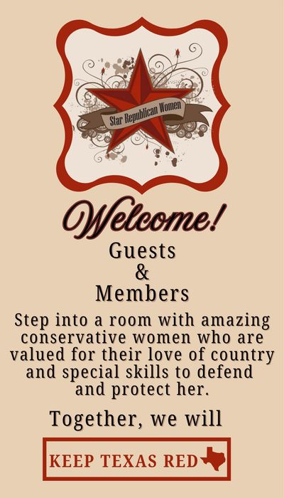 Political advertising paid for by Star Republican Women PAC, PO Box 8675, Horseshoe Bay, TX 78657, (www.startxrw.org) a non-profit organization under Section 527 of the IRS Code. Contributions to Star Republican Women are NOT tax deductible as charitable contributions for federal income tax purposes. Corporate contributions are not permitted. Star Republican Women is not authorized by any candidate or committee.